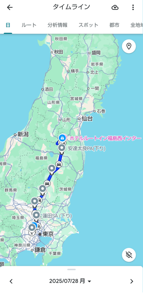 日本一周1日目 日本一周 2025.07.282025.08.12 本日から夢だった日本一周の旅をスタートしました。 本日は、自宅のある東京都から福島県まで移動しました。 磐梯吾妻スカイラインを走行しました。 そして、下りの燃費がすごいことになりました。 本日の走行距離350km(東京→福島)