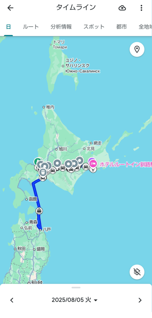 日本一周9日目 日本一周 2025.08.052025.08.15 本日は、日本一周9日目です。 朝の釧路は大雨警報がありましたが、出発する頃には雨はあまり降っていませんでした。 午前中に、釧路湿原に行きました。 展望台にも登りましたが、曇っていました… その後、札幌時計台にも行きましたが、時間の都合で、中に入れず… 夜のフェリー(23:59発)で青森へ行きます。 本日の走行距離397km(釧路→札幌→苫小牧)